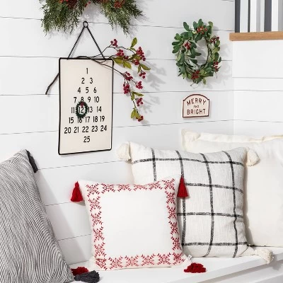Add the perfect finishing touch to your sofa or accent chair with this Woven Slub Checkered Throw Pillow with Tassels from Hearth & Handâ„¢ with Magnolia. This square pillow features a black checkered pattern on a woven slub backdrop for a classic look, and it comes with tassel detailing at the edges for added depth and dimension. Crafted from 100% cotton with ultra-soft filling, this square throw pillow provides comfortable support as you lean back after a tiring day. Pair this decorative pillow with other patterned pillows or mix and match with solid pillows for designer flair.