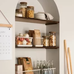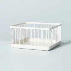 The Metal Wire Storage Basket from Hearth & Handâ„¢ with Magnolia brings handy organization to your space and keeps things neat and accessible. This metal basket has an open-wired construction that is great for keeping tabs on what’s inside and lets you remove and replace items easily, while its solid bottom provides a secure base for snack packs, craft supplies and other household items. It’s finished in a matte cream hue that will look great and go with any type of home decor. The multipurpose storage basket can be used in any room of your home to declutter your space by keeping magazines, books and more nicely arranged.